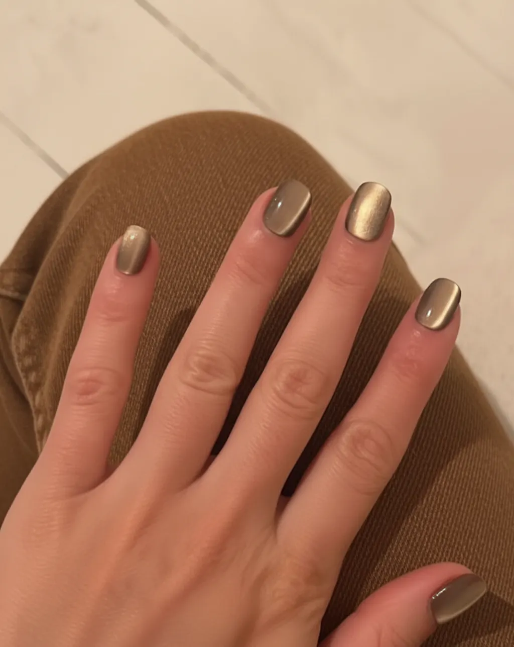 Understated yet striking, the Golden Tea Press-On Set in Super Short Square shape adds a touch of elegance with its subtle cat-eye shimmer. The unique gold tone catches the light in a soft way, making it a talking point wherever you are. Perfect for those who want to make a statement without saying a word.
