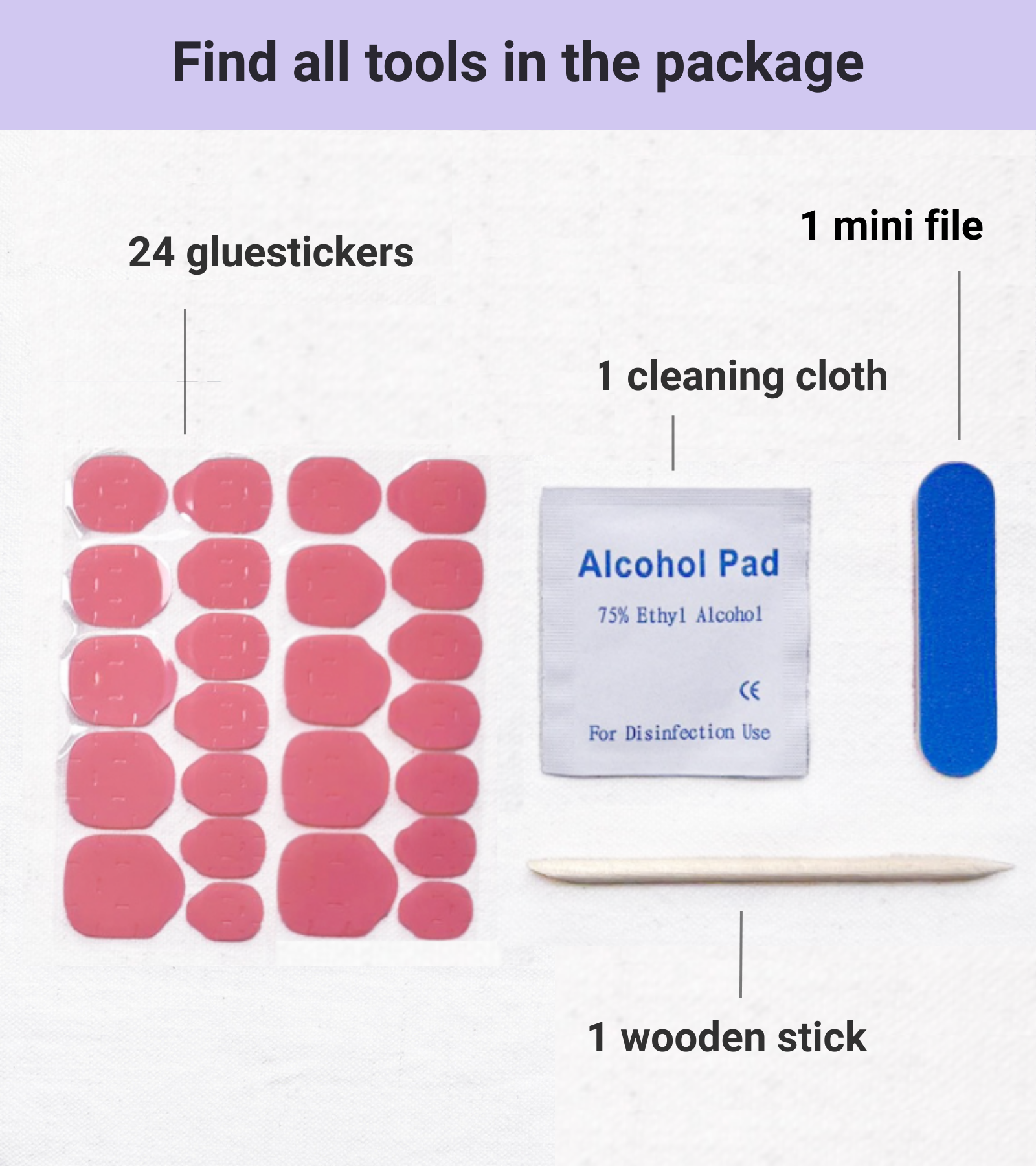 Es gibt zwei unterschiedliche Klebe-Sets, pink und natur. Komme mit natur besser zurecht.