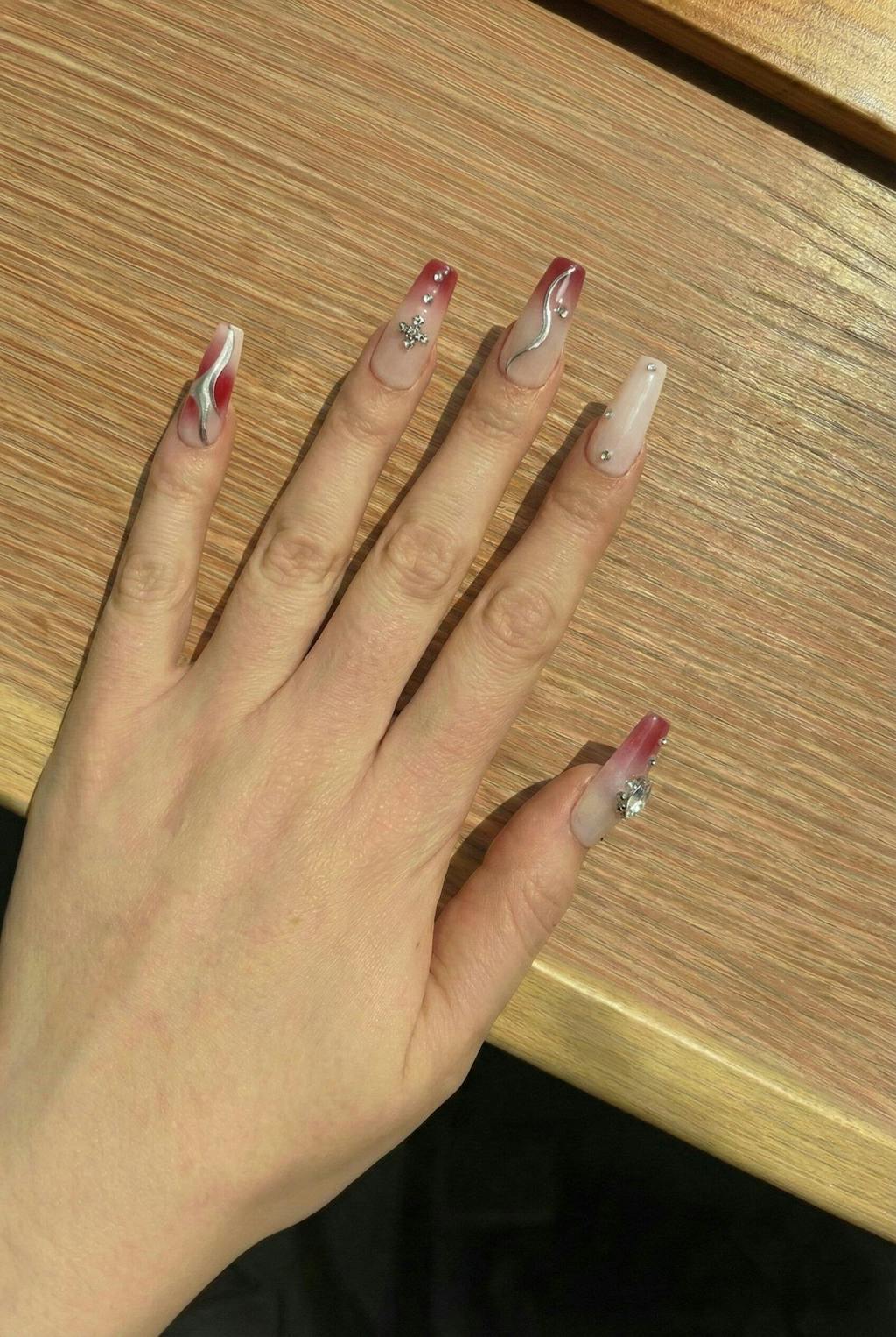 Eine feurige Fusion aus silbernen Flammen, Chrome-Details und galaktischen Charms. Auffällig und elegant zugleich. Handgefertigt, wiederverwendbar und im langen Coffin-Shape, für einen Look mit Wow-Effekt.