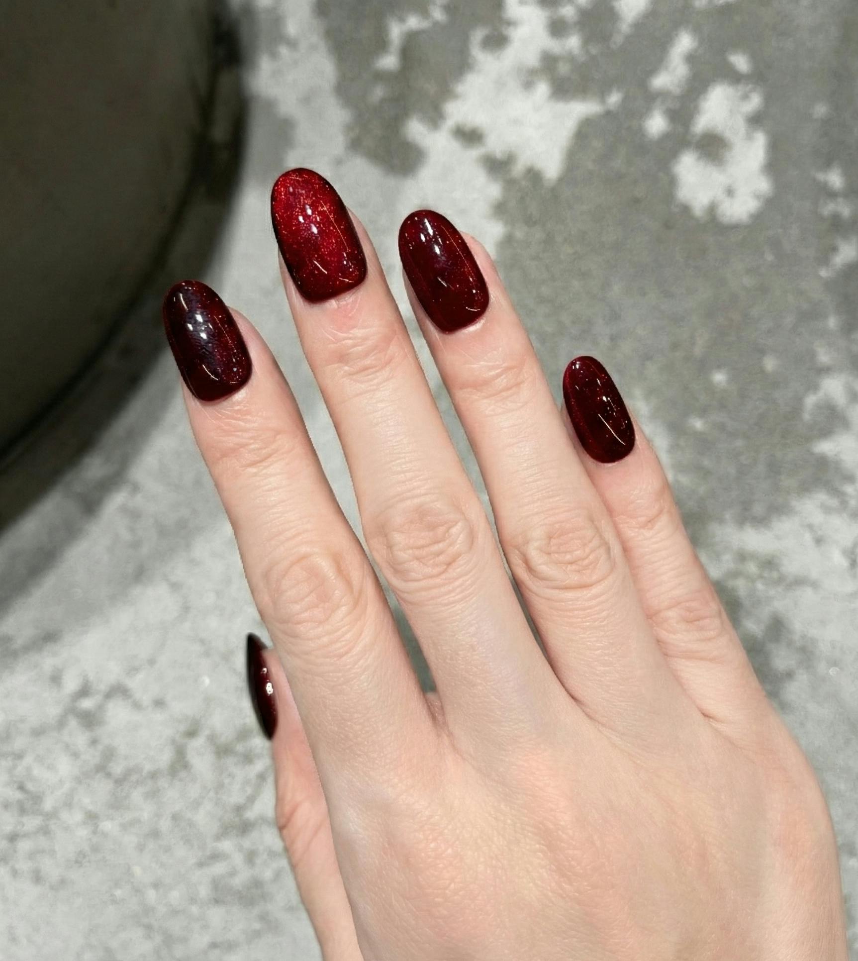 Ruby Flame Press-Ons: 100 % wiederverwendbar und handgefertigt in einer eleganten kurzen Rundform. Die besondere "Crimson Eclipse" Cat-Eye-Farbe mit schwarzer Basis verleiht beeindruckende Tiefe und Eleganz. Perfekt für einen praktischen und stilvollen Look – diese Press-Ons bringen zeitlose Schönheit auf deine Fingerspitzen!
