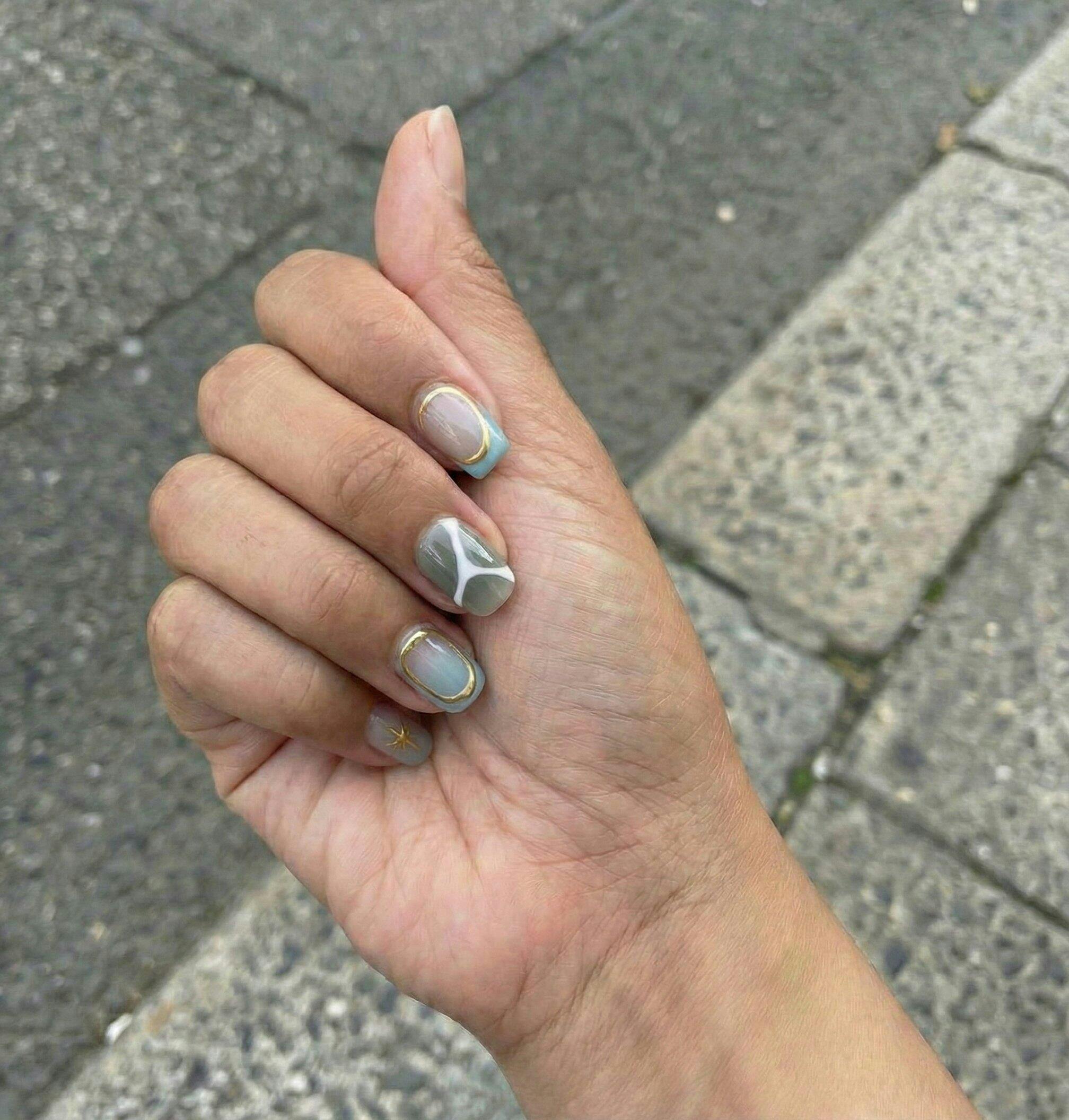 Mit Shoreline 3D holst du dir die Ruhe und Eleganz der Küste direkt auf deine Fingerspitzen. Dieses handgefertigte, wiederverwendbare Press-On-Set in kurzer Coffin-Form vereint sanfte Nude- und Meeresblau-Töne mit abstrakten weißen Linien und luxuriösen goldenen Akzenten – wie Sonnenstrahlen auf Wasser.